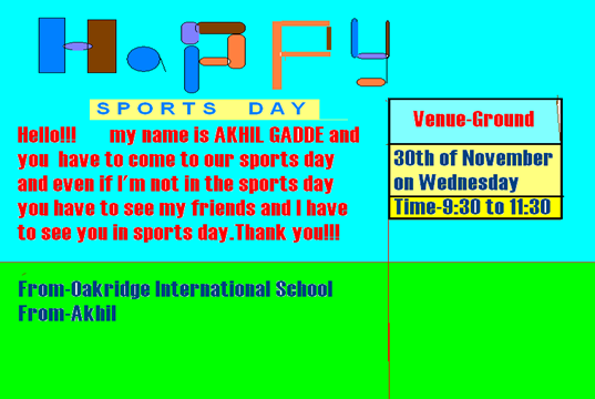 Students of Grade 3 are very excited for the upcoming “Sports Day” event. They created their own invitation card for their parents. Here are some student work samples created using MS Paint.