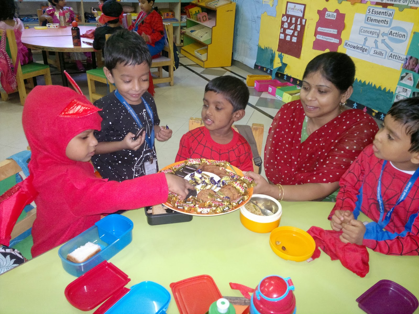 The big-deal Halloween parade at Oakridge, Newton campus by Pre-Primary was the most awaited event by every little Oakridger. The whole Pre-Primary comes out to the quad and parades around.  With its sweet, spooky treats and devilishly cute costumes,  the little Oakridgers were looking marvelous.  After the Parade, the students came back to the class and were involved in different activities.  We really appreciate the parents who came forward and took the imitativeness by explaining about Halloween, Pumpkin carving and making of Jack-o-Lantern.  We would like to specially thank the parents – Ms. Nikhita Mehta, Dr. Soujana, Ms. Lakshmi, Ms. Sravanthi, Dr. Nazia and Ms. Indu  for participating in the event.